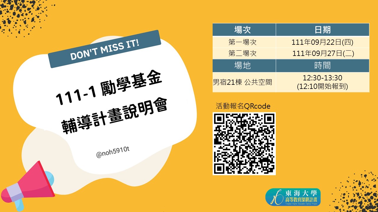 ※另本(111-1)學期餐食補助申請至下周五9/30,為保障多數同學權益,截止後名單恕不接受個案申請!請符合資格的同學盡速完成問卷申請。