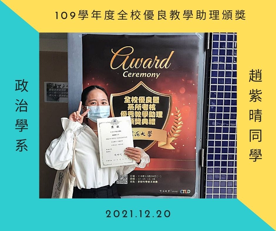 賀:本系趙紫晴同學獲得全校優良教學助理的榮譽。