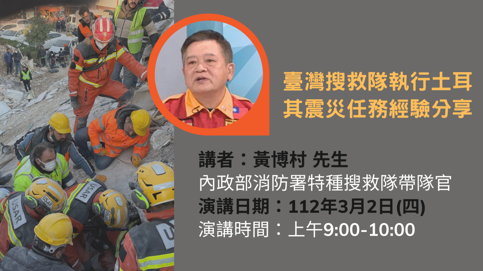 講題:臺灣搜救隊執行土耳其震災任務經驗分享